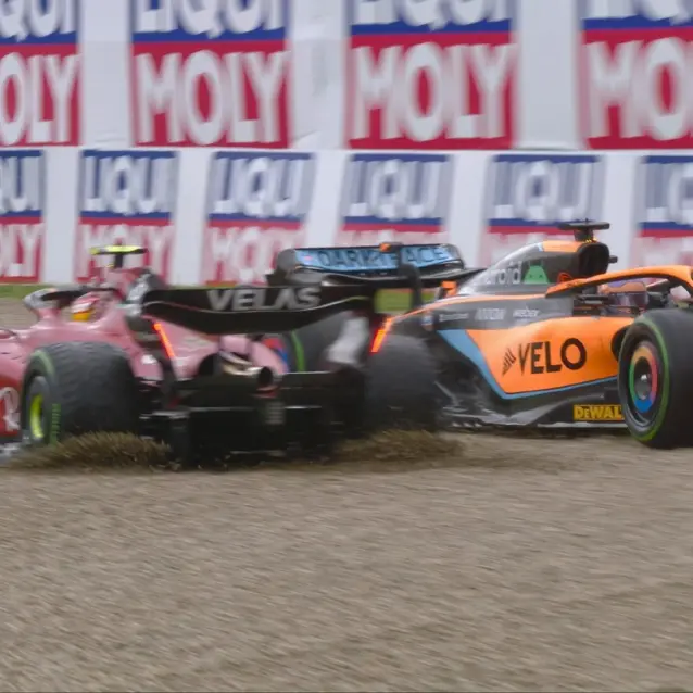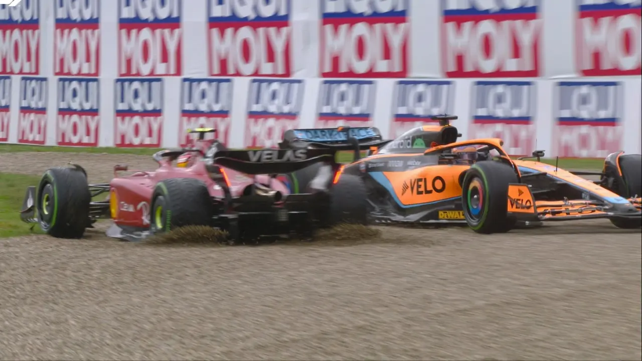 Este incidente causó que saliera el auto de seguridad porque el monoplaza de Sainz ya no regresó a la pista, mientras que Ricciardo cayó hasta el puesto 19 por esta situación.