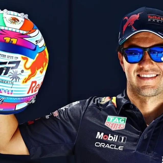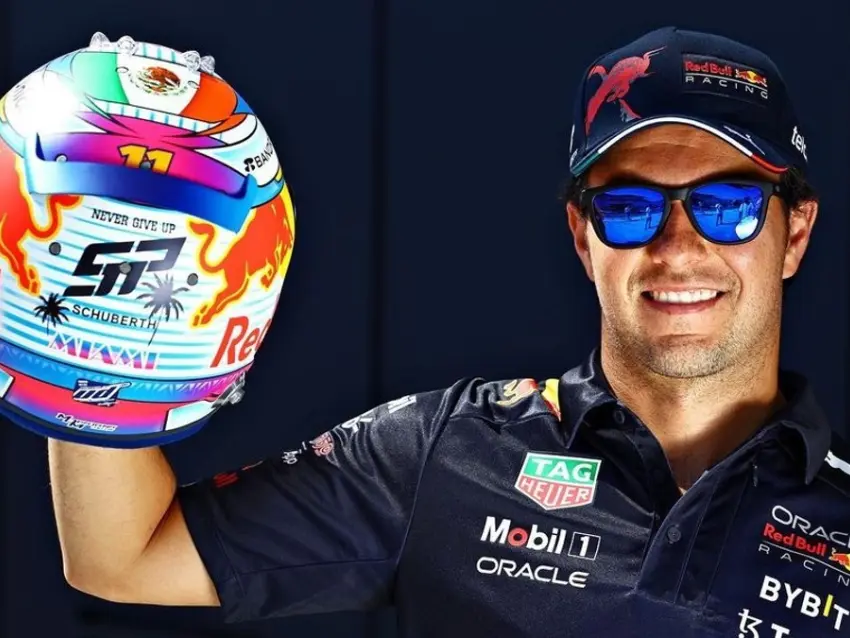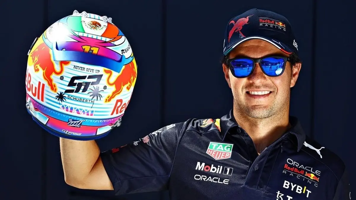 Checo Pérez y otros pilotos presentaron cascos con diseños especiales para el GP de Miami Créditos: Instagram @schecoperez